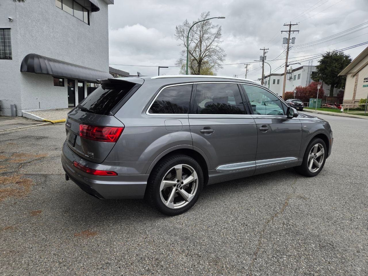 2018 Audi Q7 Progressiv S Line quattro Auto, Navigation, 7 Passenger, AWD, Local, Grey on Black leather interior, Back up camera, Panoramic sunroof, Power windows, Power locks, A/C, Bluetooth, AM/FM/CD, AUX, USB, Power seats, Heated seats, Keyless entry, Push start button, Alloy wheels, Cruise control, Safety inspected, Warranty available