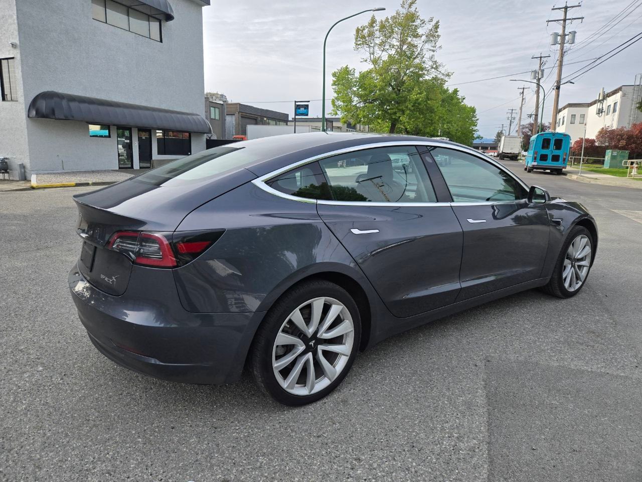 2019 Tesla Model 3 Standard Range Plus, Navigation, Local, Grey on Black leather interior, Glass roof, Basic autopilot, Power windows, Power locks, Power seats, Heated seats, Bluetooth, AM/FM, USB, Back up camera, Side cameras, Alloy wheels, Cruise control, Safety inspected, Warranty available